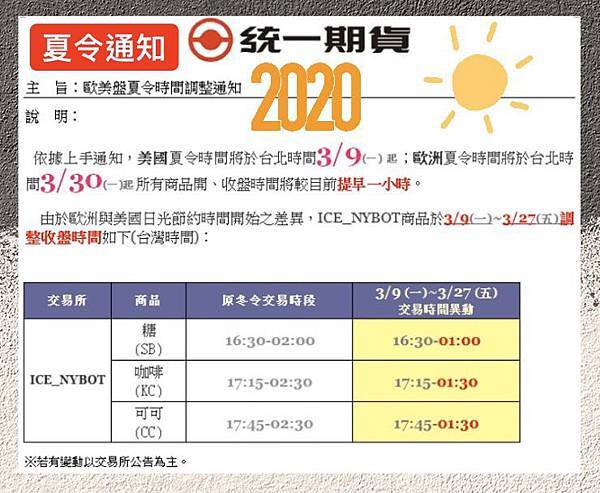 表示有實施日光節約時間的國家(英美盤),以夏冬令之分,冬令開收盤時間多加一小時。